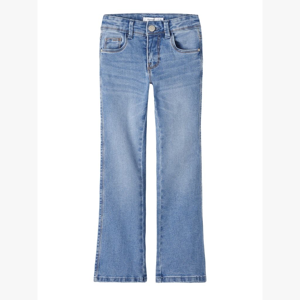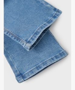Korkea vyötärö, levenevät lahkeet. Joustava kangas. Vetoketju ja nappi. Vyötärön leveyttä voi säätää kiristysnauhoilla. Etu- ja takataskut.