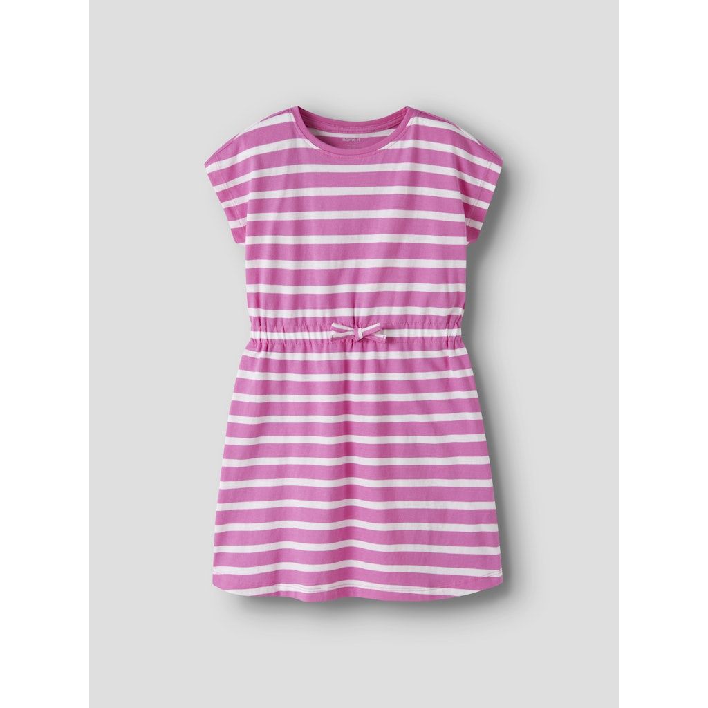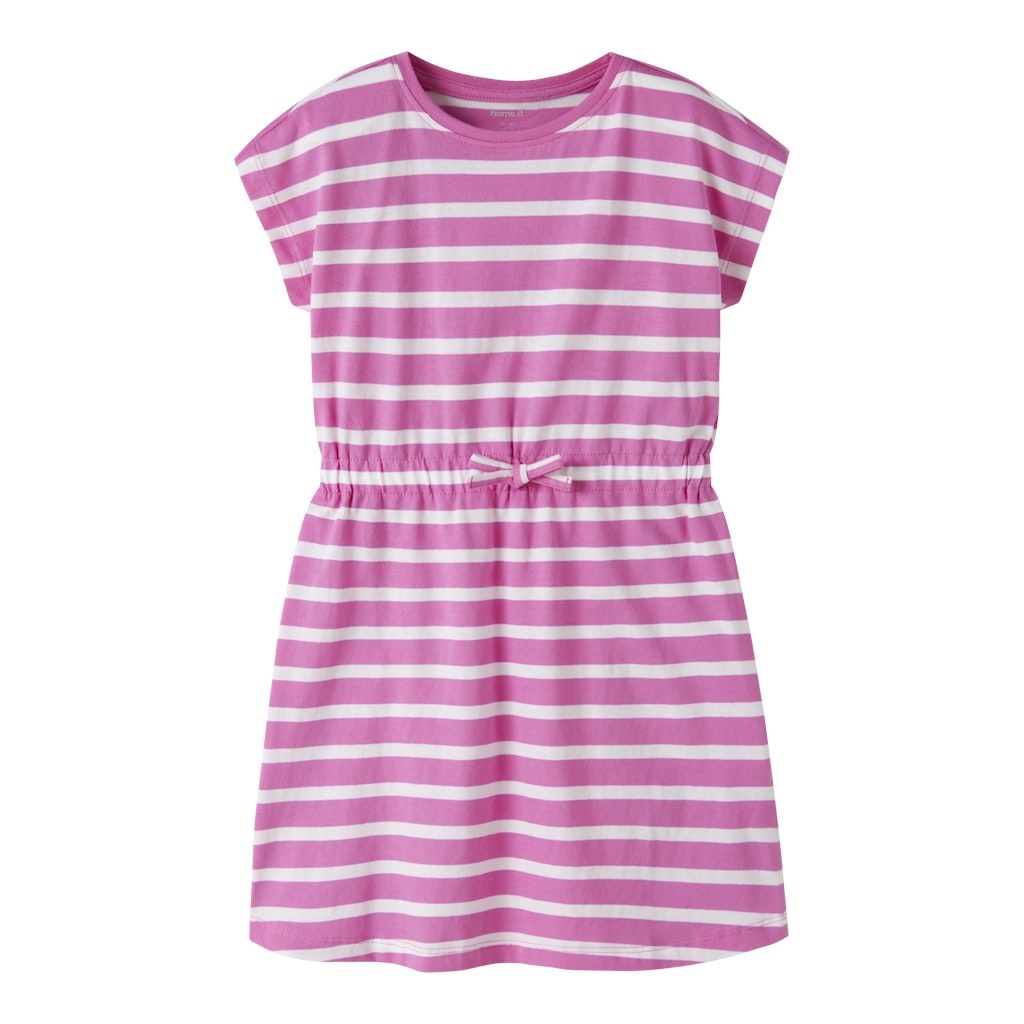 NAME IT NKFMIE Raitakuosinen mekko. Pehmeää, joustavaa kangasta. Pyöreä pääntie. Kuminauha vyötäröllä ja koristerusetti.