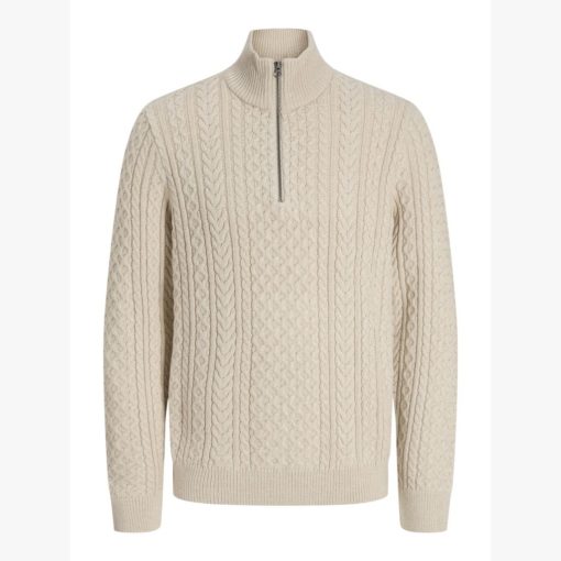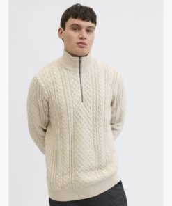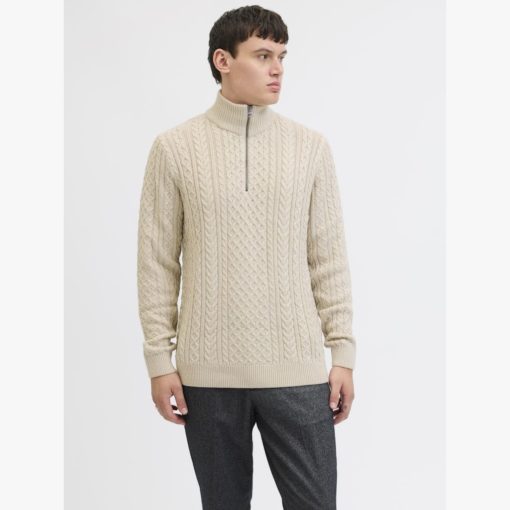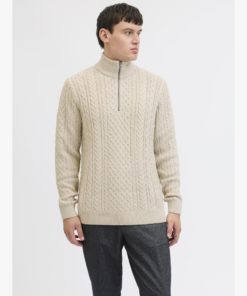 JACK&JONES JPRBLUSEAN kaunis palmikkoneule. Pystykaulus vetoketjulla. Resorineulosta helmassa, hihansuissa ja kauluksessa.