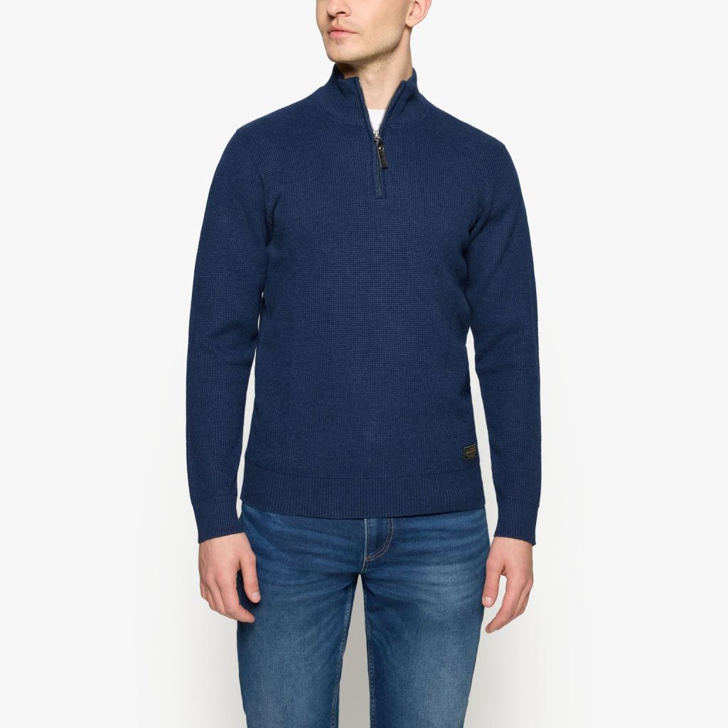 Puuvillainen vetoketjuneule. Resorineulosta hihansuissa, kauluksessa ja helmassa. Pehmeä ja hengittävä neulos. Puolikorkea kaulus vetoketjulla.