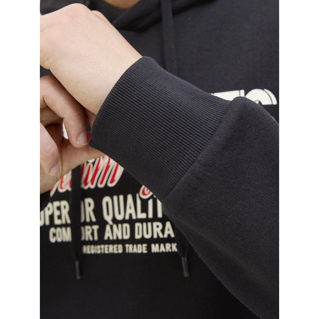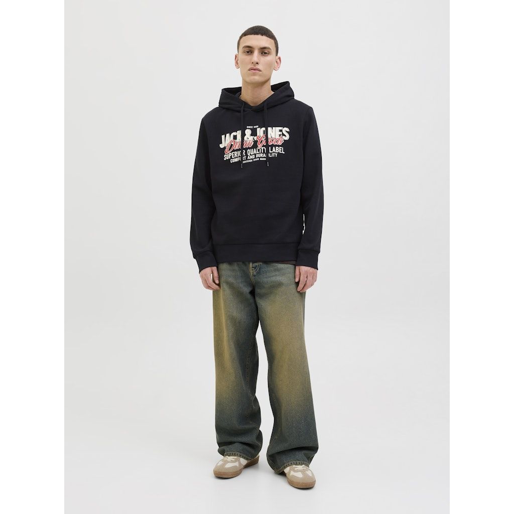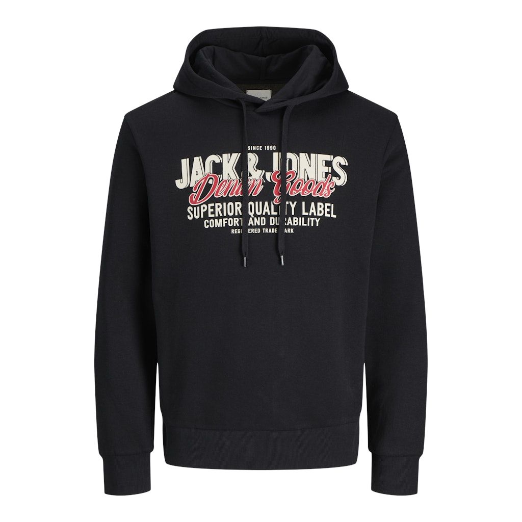 JACK&JONES JJELOGO miesten collegehuppari. Pehmeä, nukattu sisäpinta. Kiristysnyöri hupussa.