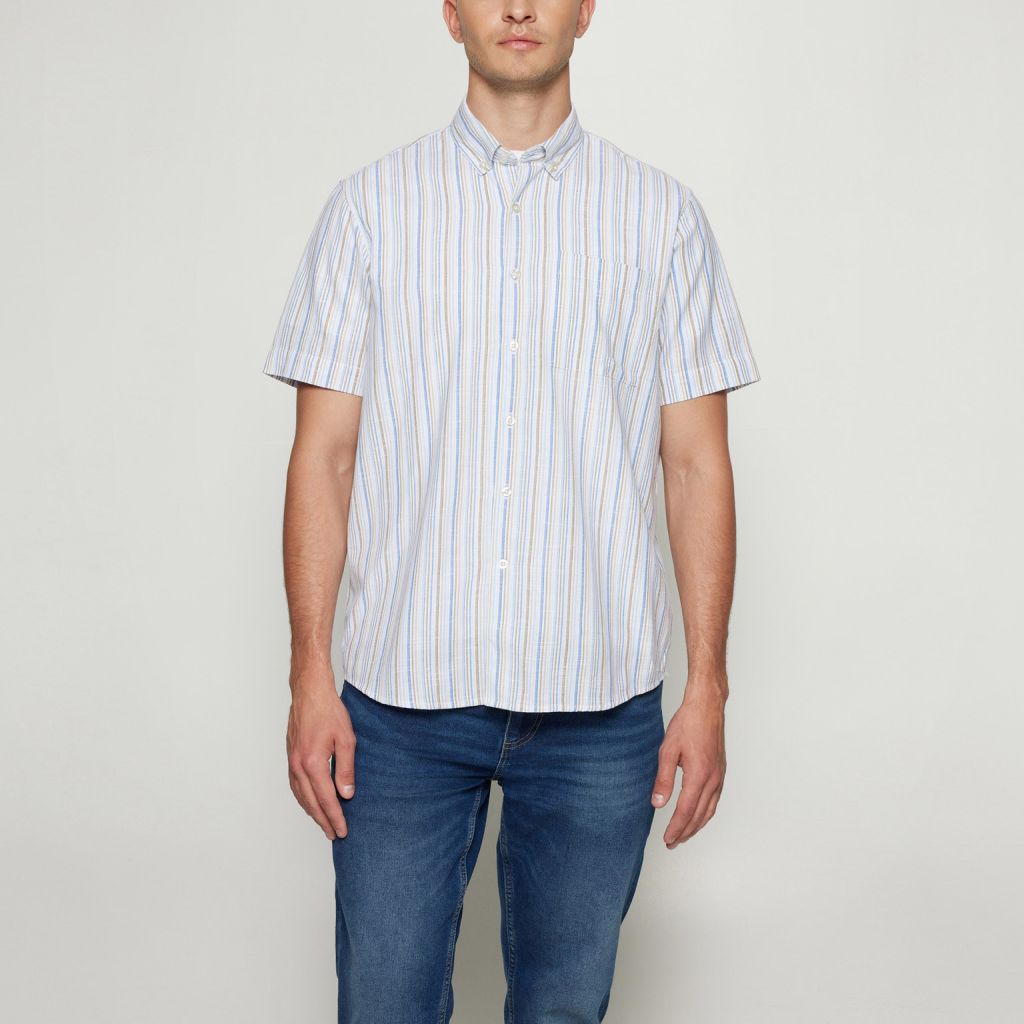 SIGNAL kauluspaita. Kevyttä puuvillaa. Lyhyet hihat. Nappikaulus ja rintatasku.