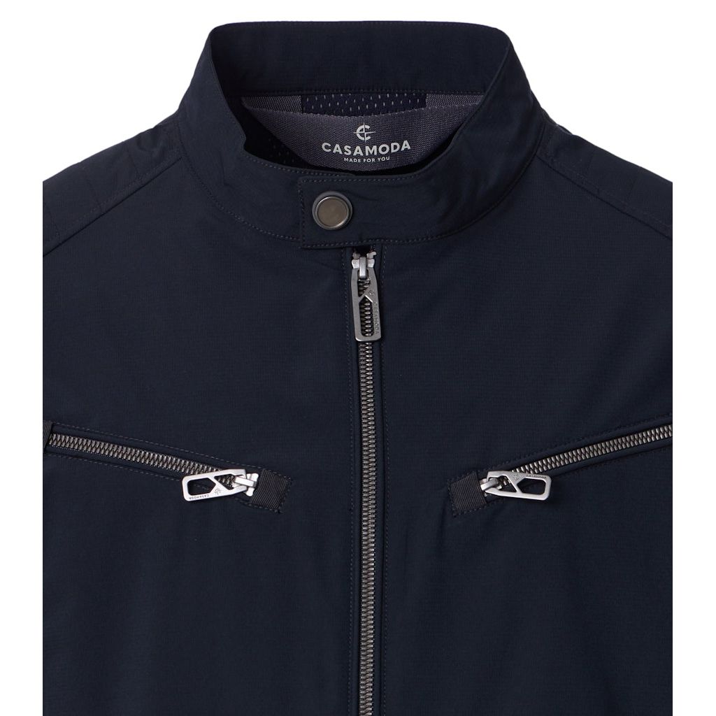 CASAMODA ulkoilupusero. Ohut verkkovuori. Pystykaulus nepparikiinnityksellä. Edessä neljä vetoketjutaskua. Povitasku. Hihansuussa nepparikiristys. Vettä hylkivä ja tuulenpitävä materiaali.