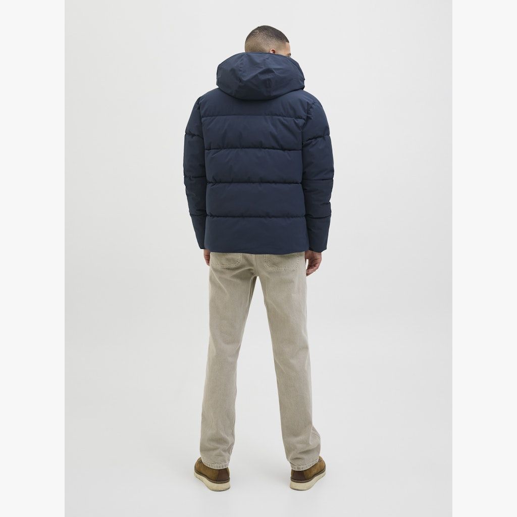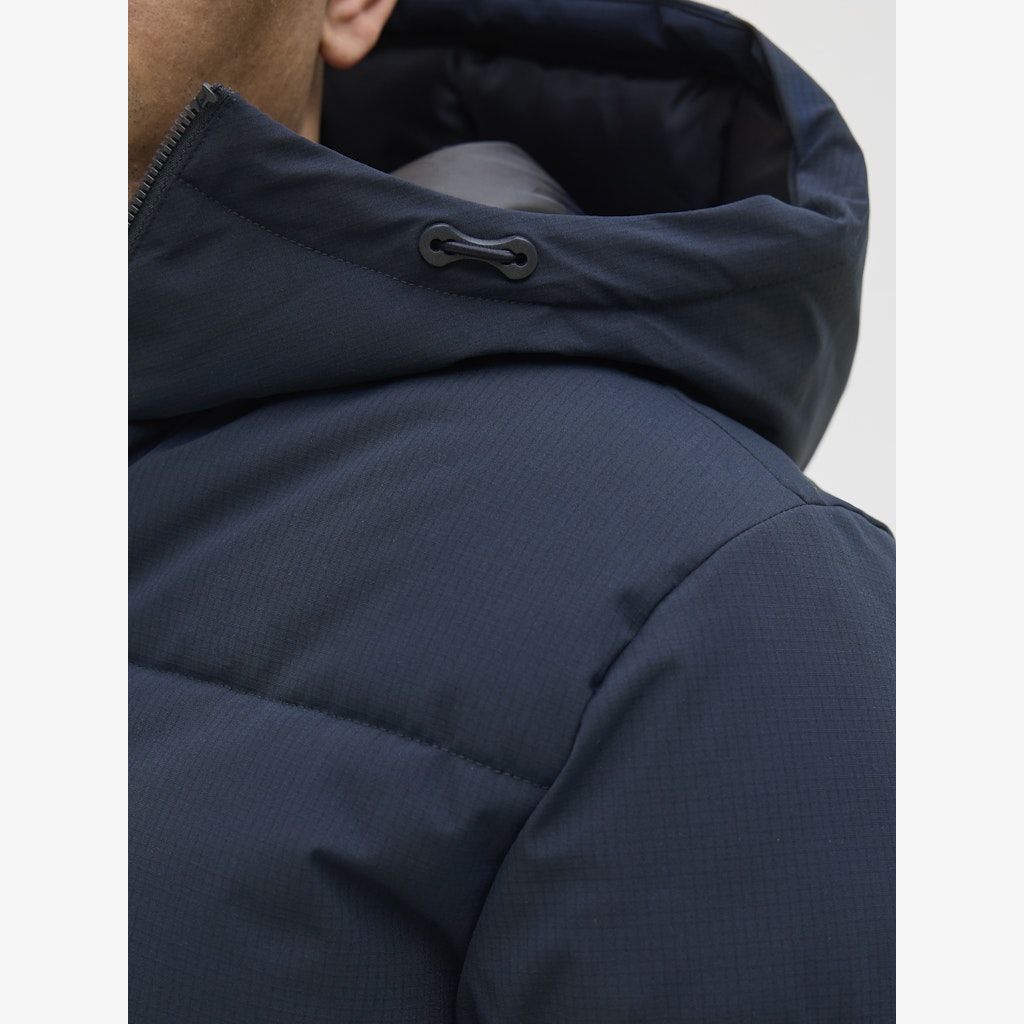 JACK&JONES JJGLOBAL toppatakki. Hupussa kiristysnyörit. Vetoketjukiinnitys ja kaksi avotaskua edessä.