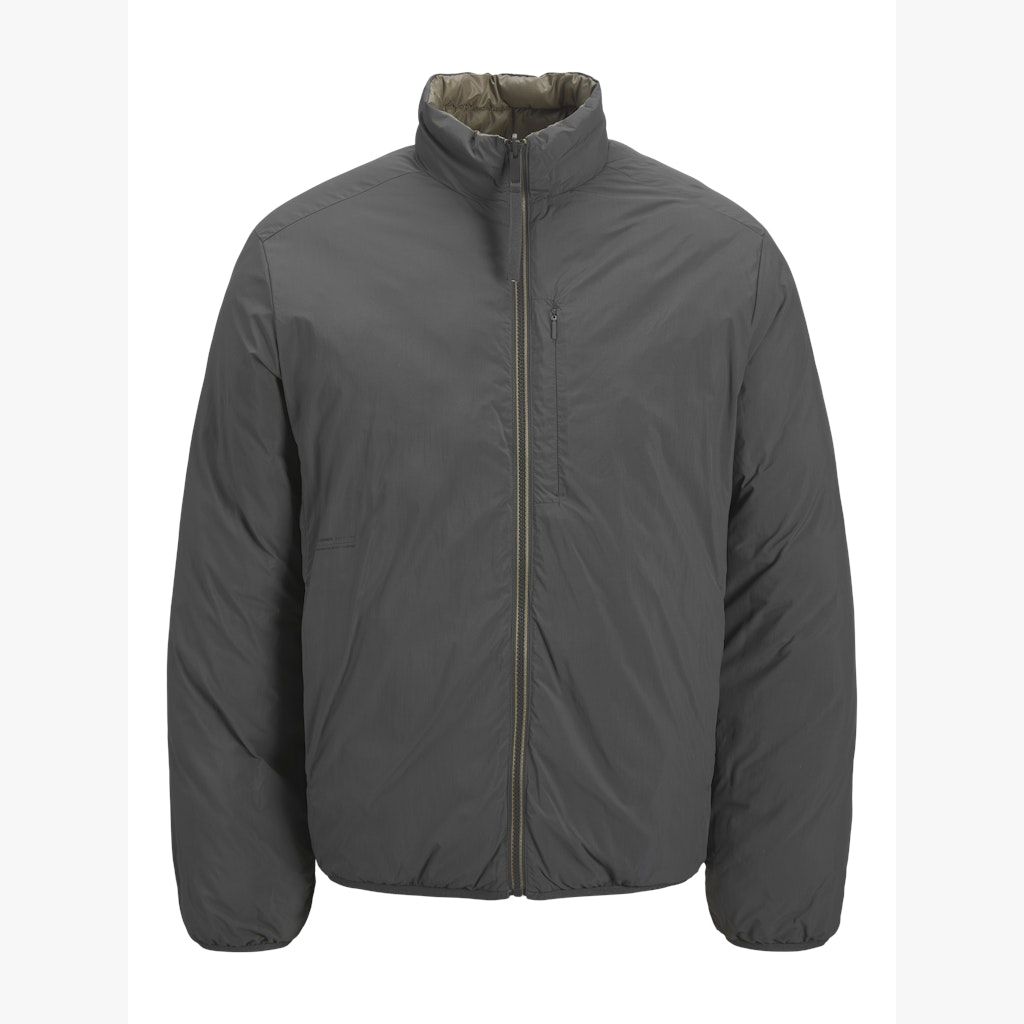 JACK&JONES JPRCCJAKE tikattu kääntötakki. Toiselta puolelta sileä harmaa. Vetoketjukiinnitys ja kaksi avotaskua edessä. Hihansuissa ja helmassa kuminauha.