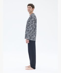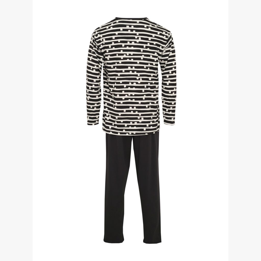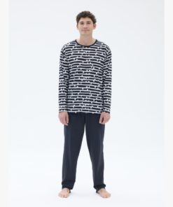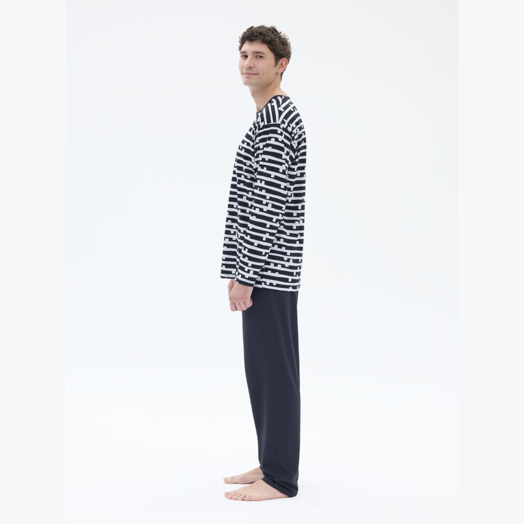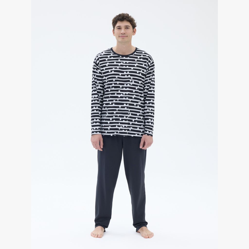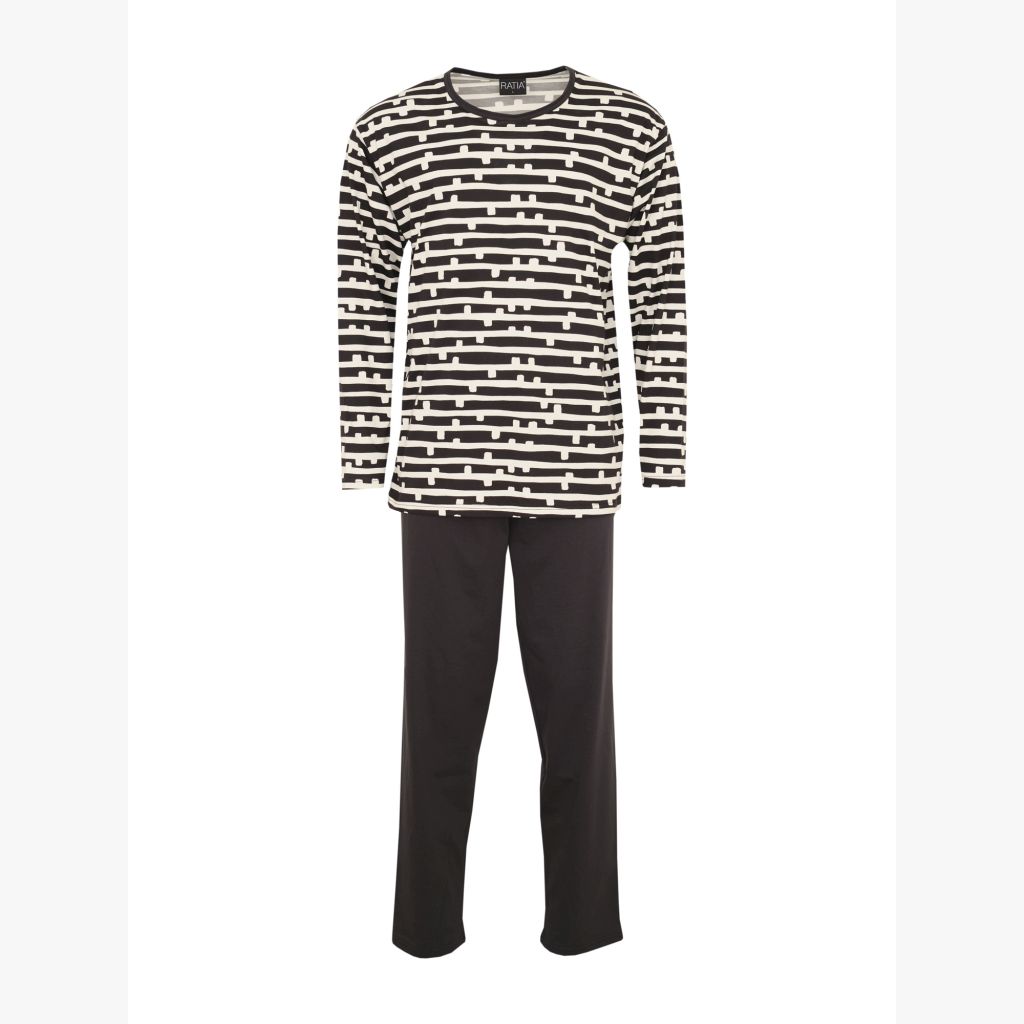 RATIA Miesten Paju pyjama. Housuissa tavallinen vyötärökuminauha, täyspitkät lahkeet. Pitkähihainen T-paitamallinen yläosa.