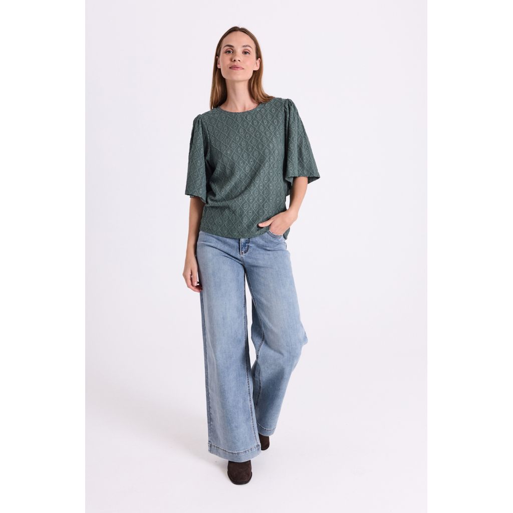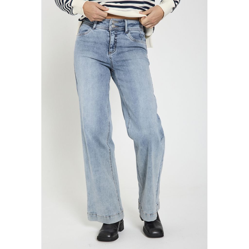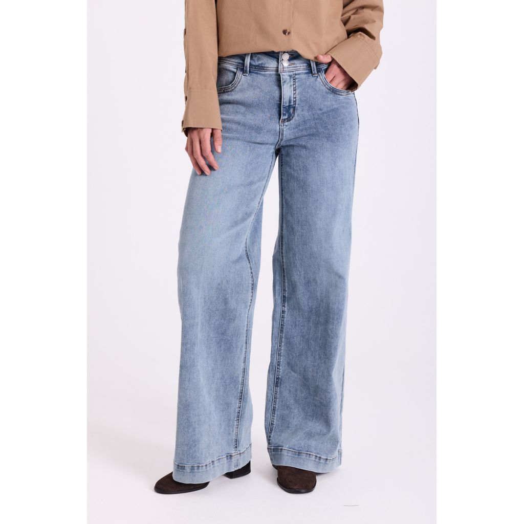 FREEQUENT trendikkäät, leveälahkeiset farkut. Etuosassa Tuck IN- istuvuus, takaosassa Push UP-istuvuus.
