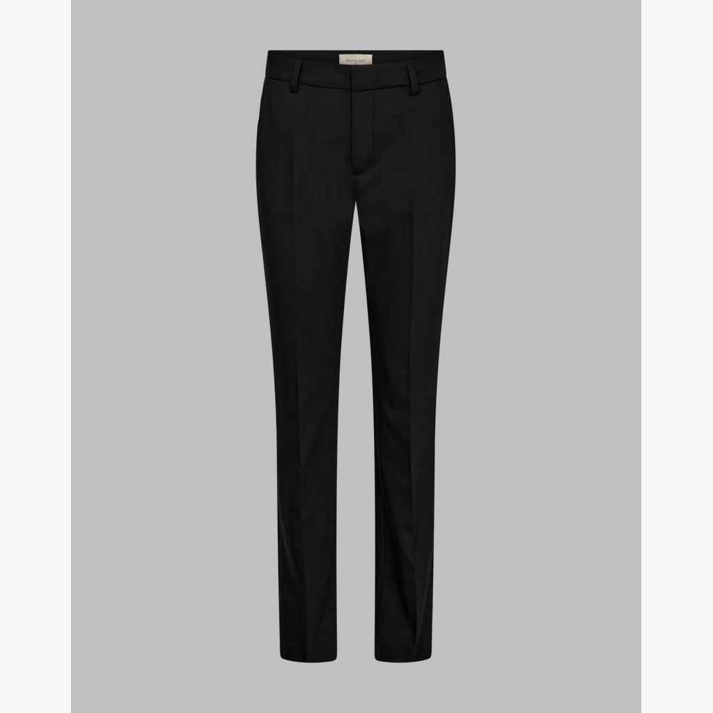 FREEQUENT FQISADORA Naisten bootcut housut. Taskut sivuilla. Takana valetaskut. Nappi ja vetoketju kiinnitys. Vyölenkit.