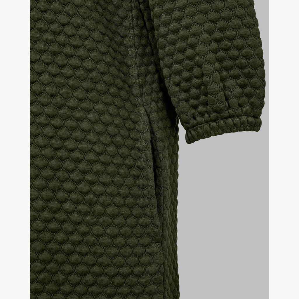 FREEQUENT FQBUBBLE Jerseymekko. 3/4 -hihat. Kohokupla-kuvioinen kangas. O-kaula-aukko. Sivuissa taskut. Pituus: n.96 cm koossa M.