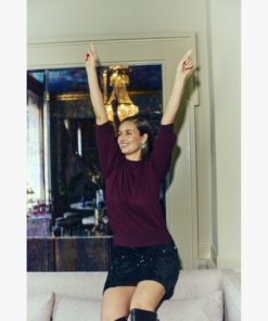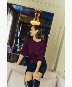 FREEQUENT kimalteleva neulepusero. Pyöreä pääntie. Hieman pussimaiset hihat.