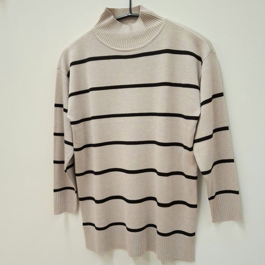 JENSEN korkeakauluksellinen neuletunika. Helmassa, hihansuussa ja kauluksessa resorit.