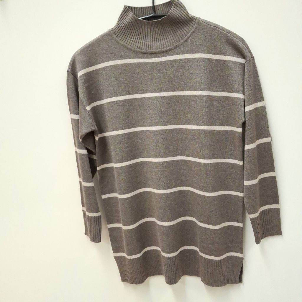 JENSEN korkeakauluksellinen neuletunika. Helmassa, hihansuussa ja kauluksessa resorit.