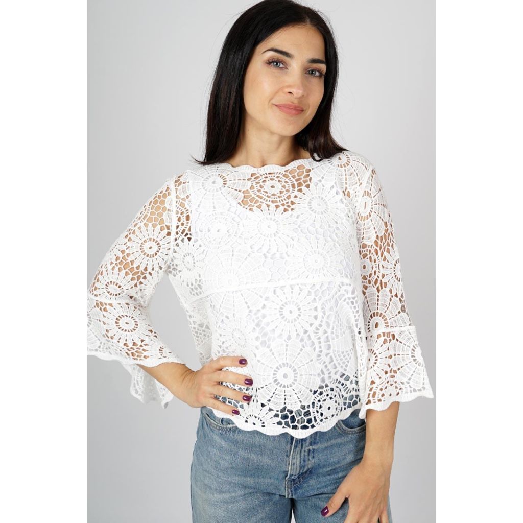 M.X.O pitsineule. Kevyt ja läpinäkyvä. Trumpettihihat. Toppi myydään erikseen.