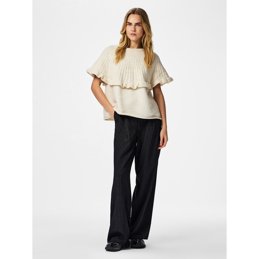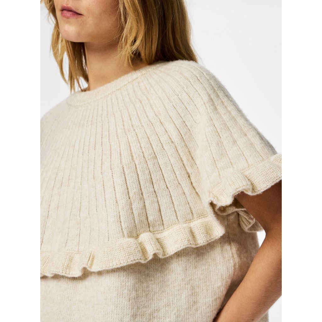 PIECES PCBEI neulepusero. Pyöreä pääntie. Lyhyet hihat. Kaunis frilla koristeena.
