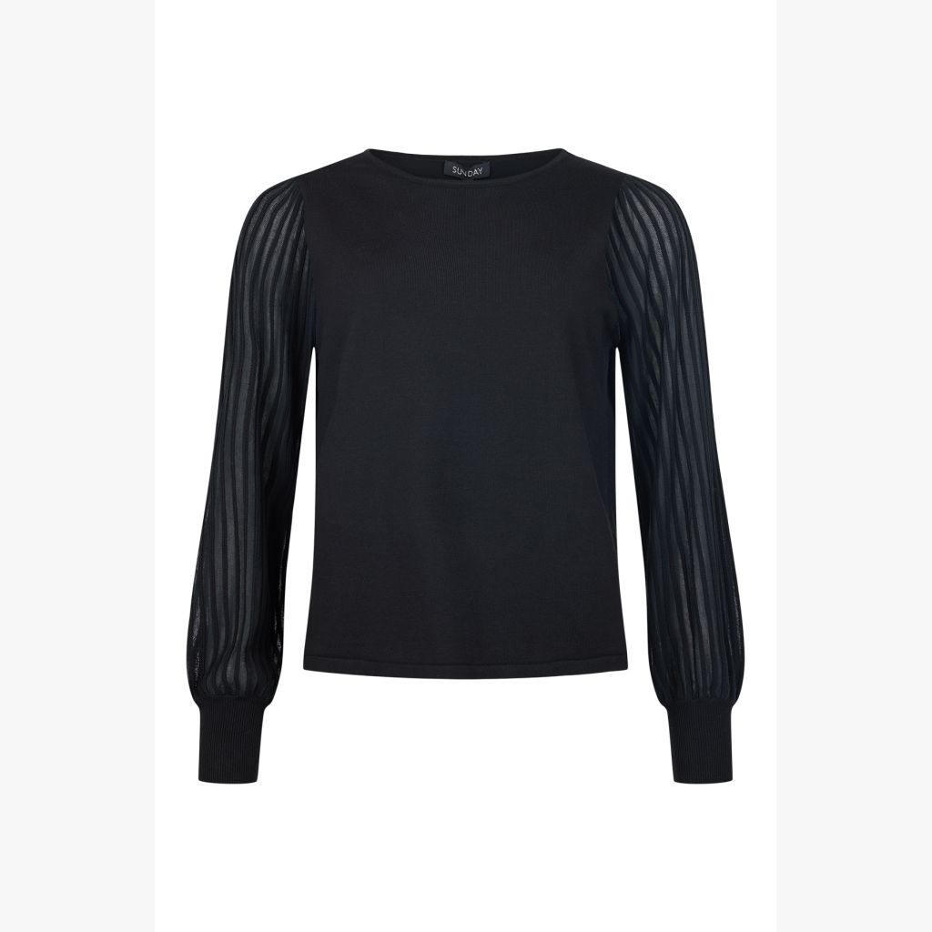 SUNDAY neulepusero. Pyöreä pääntie. Hieman pussimaiset hihat. Läpikuultavat hihat. Pehmeä viskoosisekoitus.