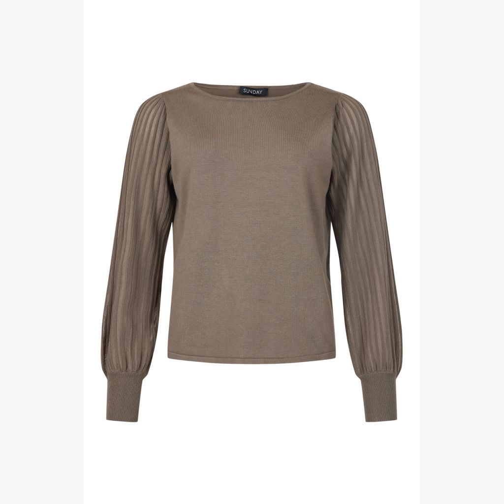 SUNDAY neulepusero.  Pyöreä pääntie. Hieman pussimaiset hihat. Läpikuultavat hihat. Pehmeä viskoosisekoitus.