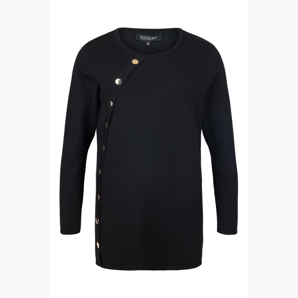 SUNDAY Neuletunika. Pyöreä pääntie. Kultaiset koristenapit. Joustava ja pehmeä materiaali.