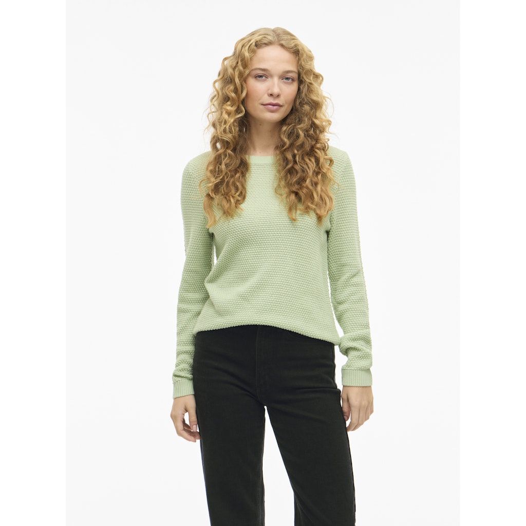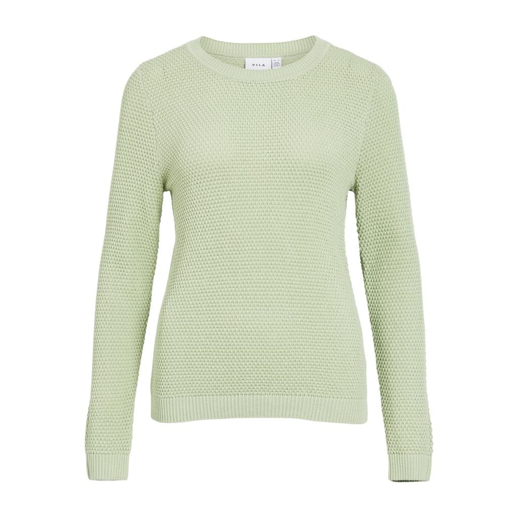 VILA VIDALO pitkähihainen neulepaita. Pyöreä pääntie. Helmikuvioitu pinta ja resorireunat.