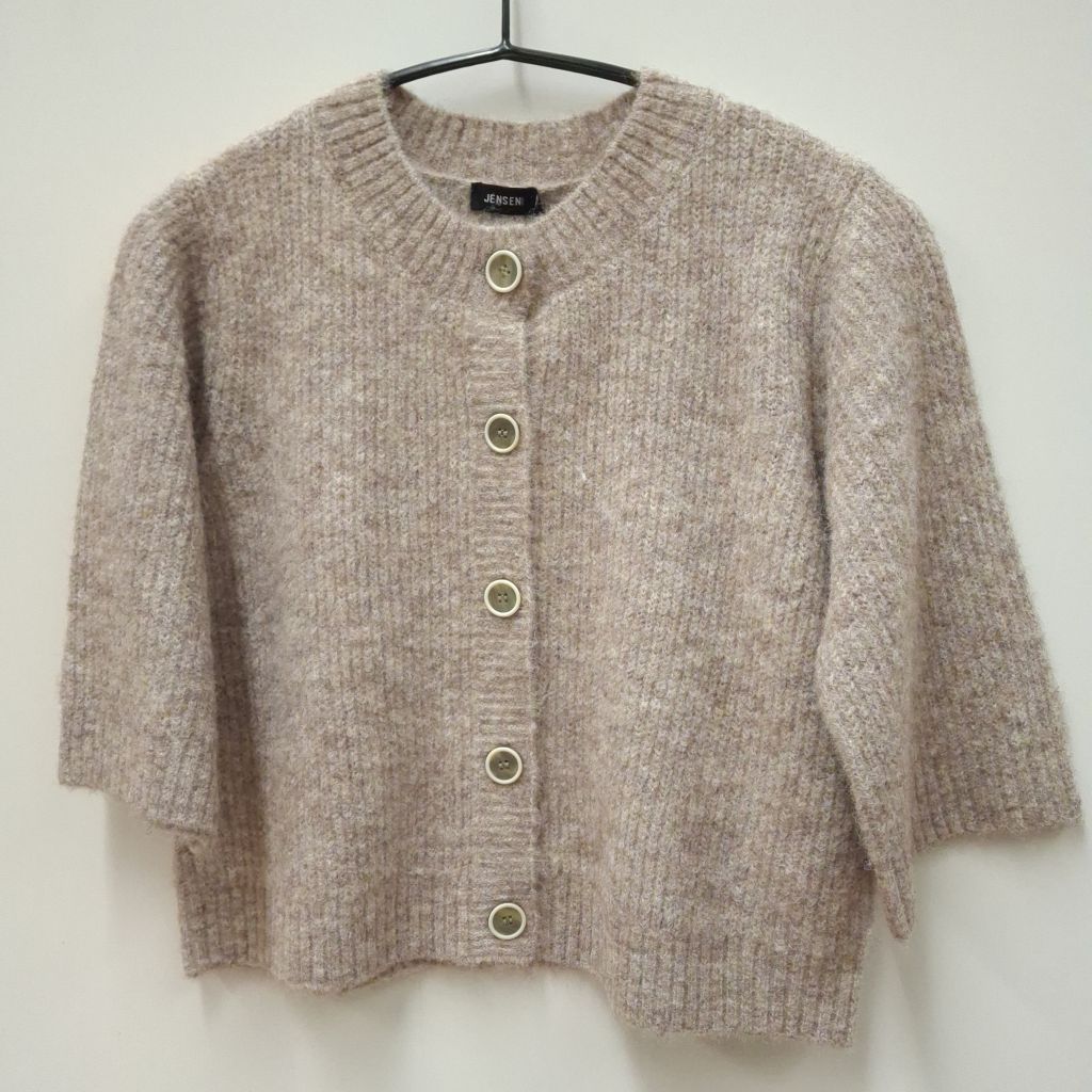 JENSEN lyhyt neuletakki. Lämmin ja pehmeä. 2/3 hihat. Nappilista.