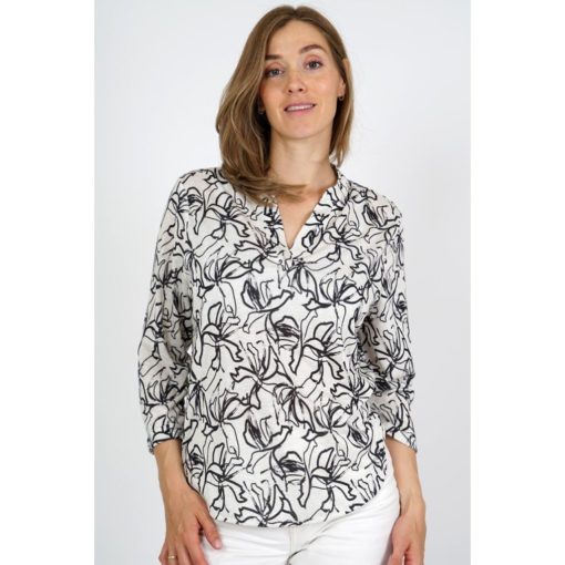 GABRIELLA kukkakuvioinen pusero. V-pääntie. 3/4 hihat. Hieman kaareva helma.