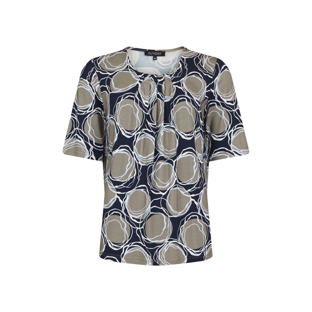 SUNDAY trikoopaita. Pyöreä pääntie. Laskokset edessä. Lyhyet hihat. Joustava ja pehmeä materiaali.