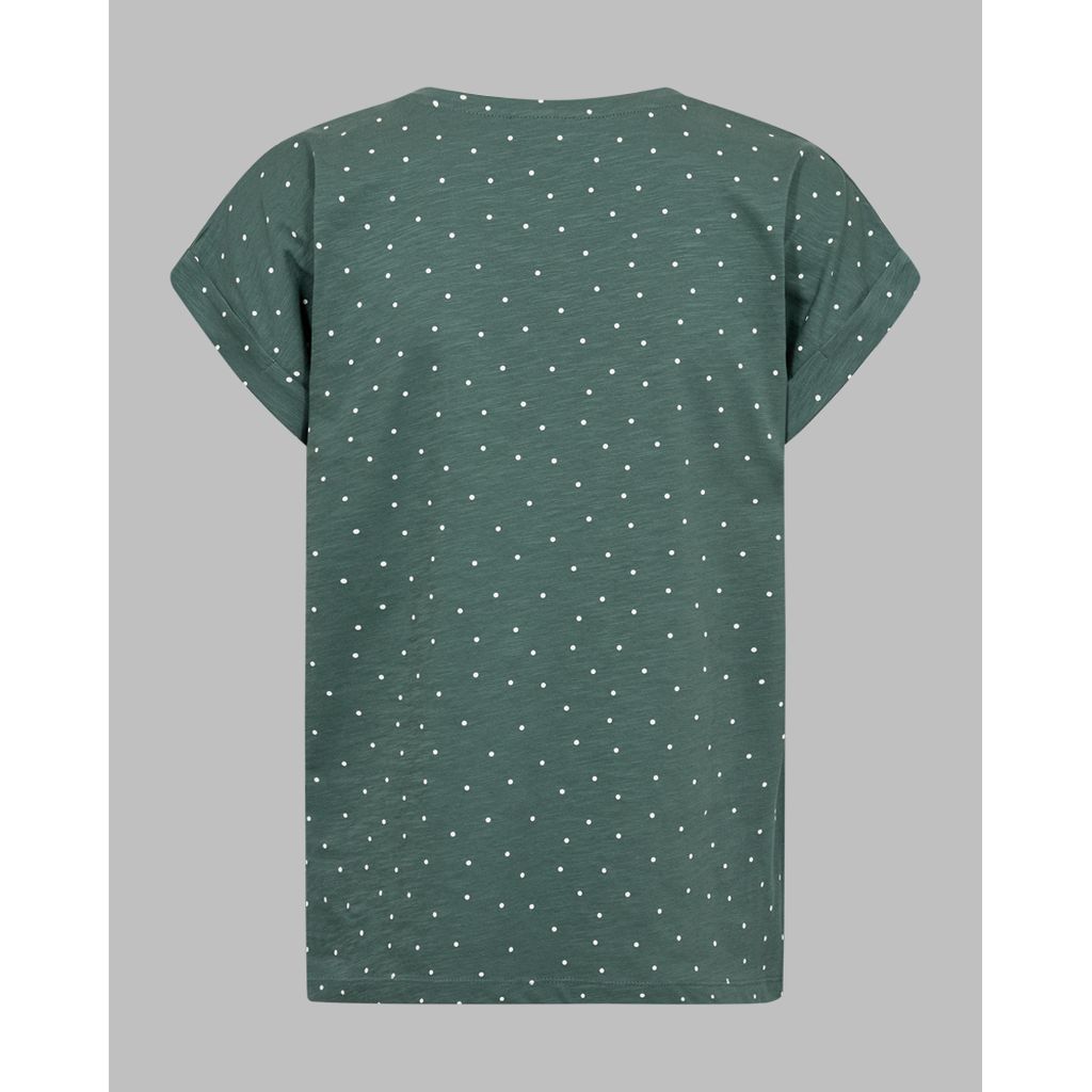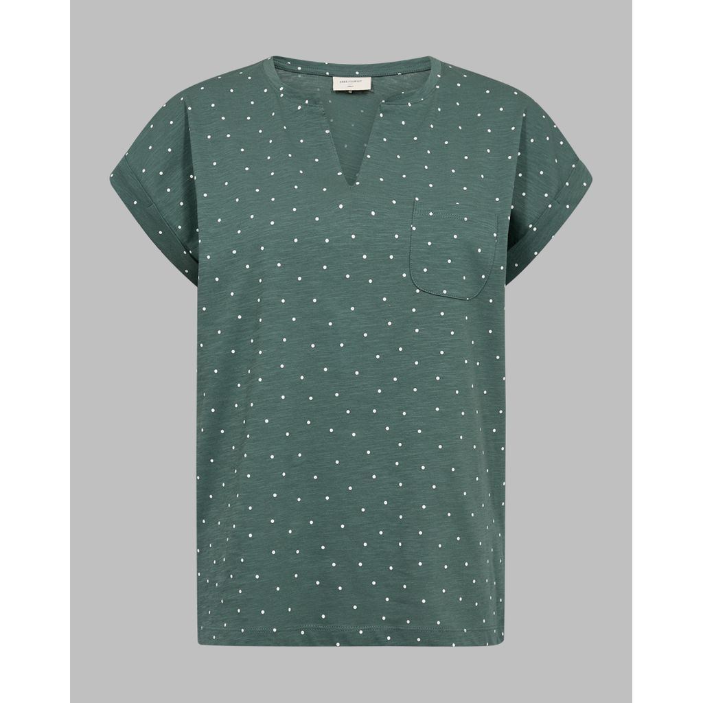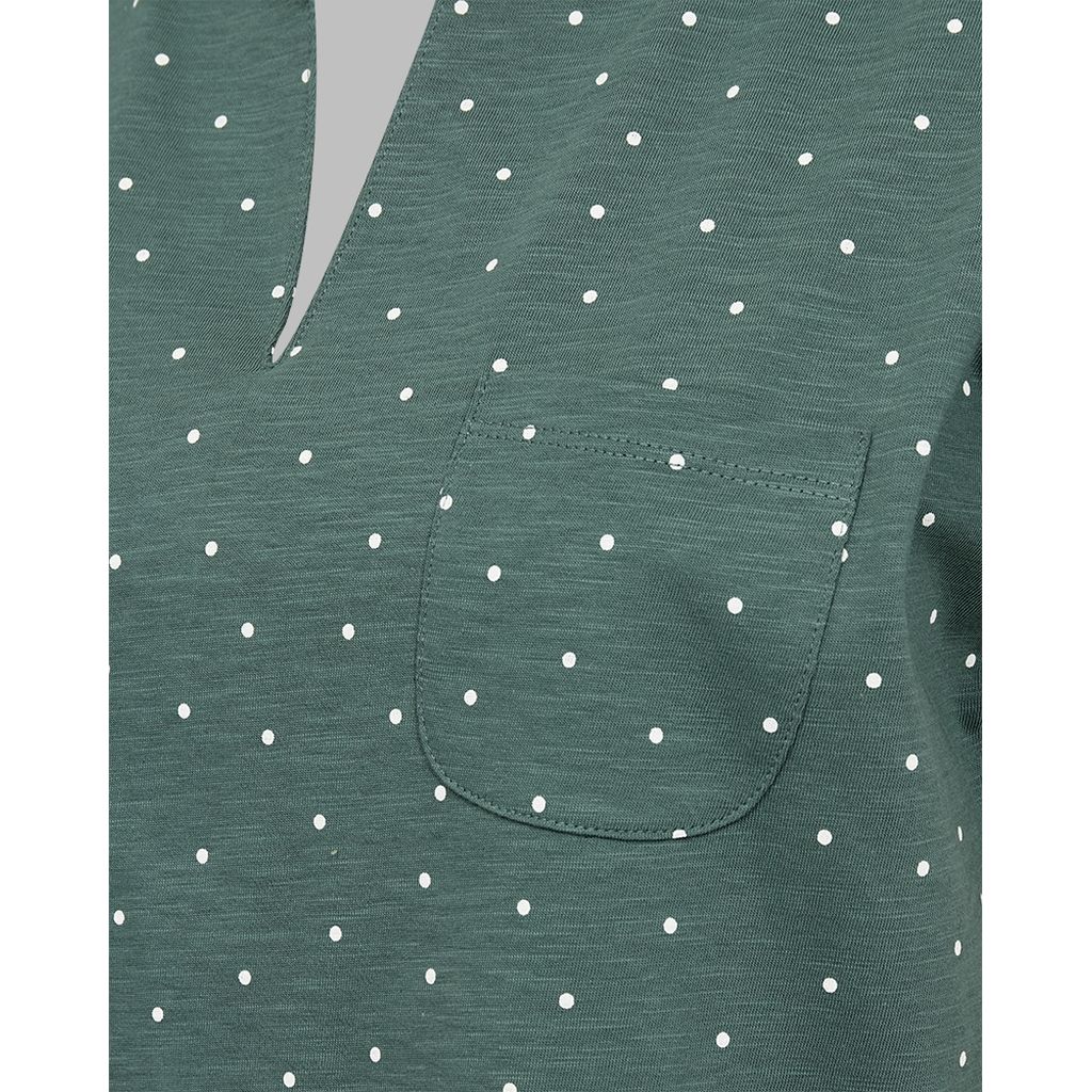 FREEQUENT FQVIVA Naisten pilkkukuvioinen T-paita. V-kaula-aukko. Käännetyt hihansuut. Rintatasku.