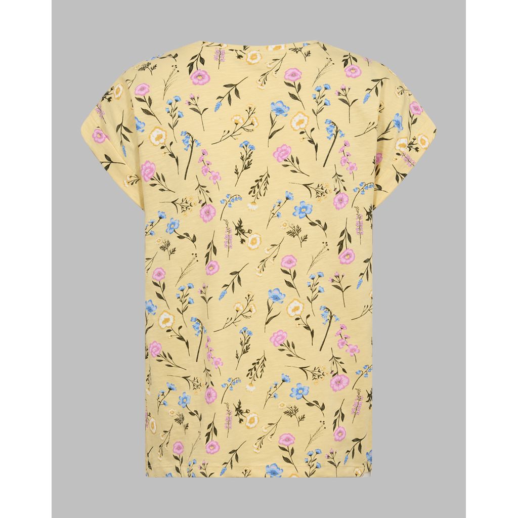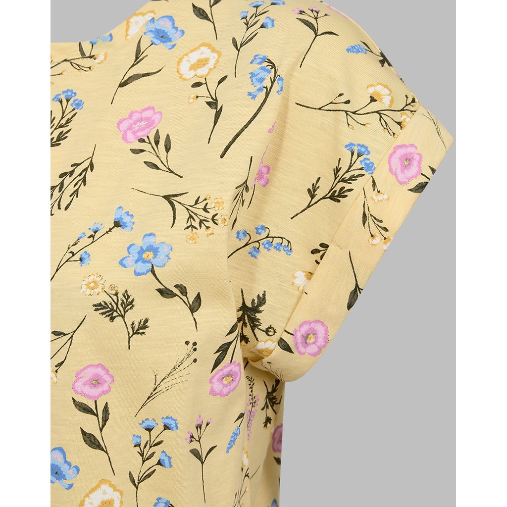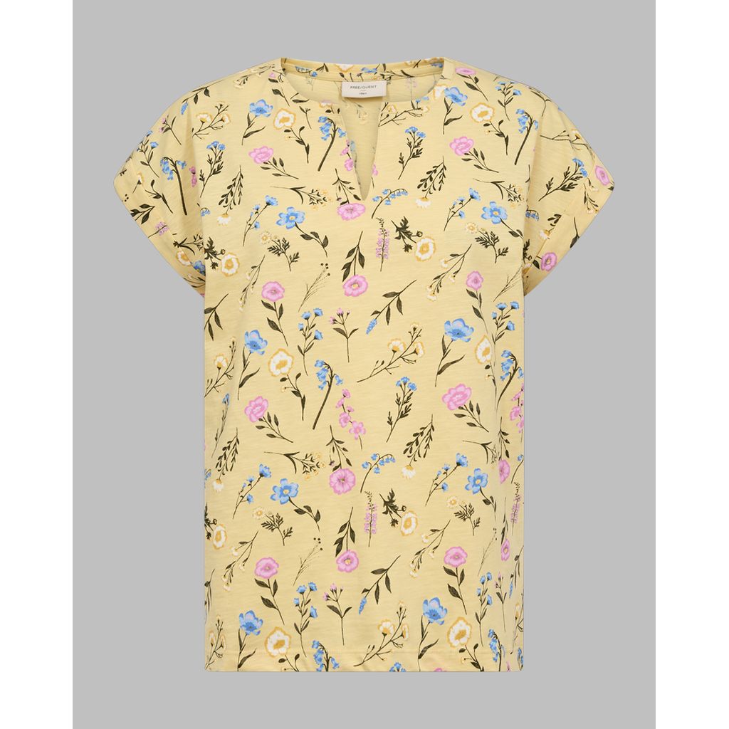 FREEQUENT FQVIVA Naisten kukkakuvioinen T-paita. V-kaula-aukko. Käännetyt hihansuut.