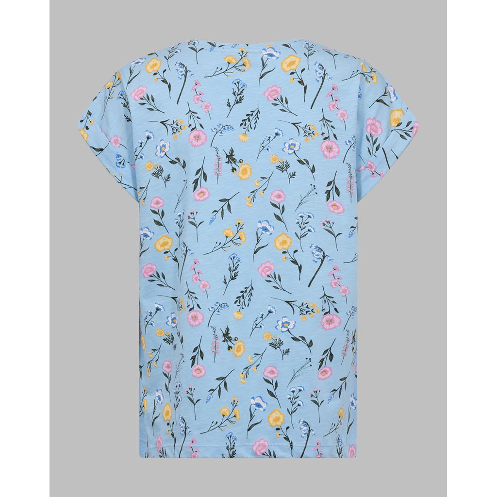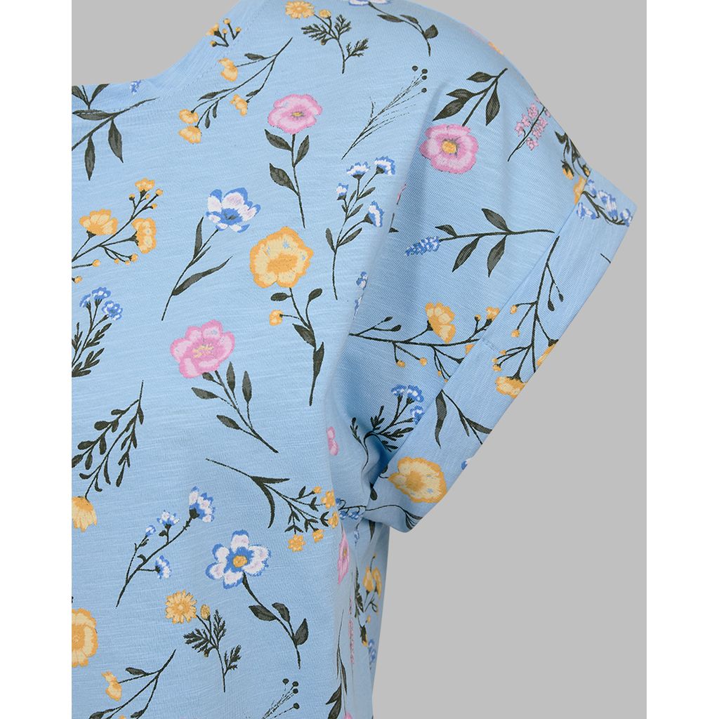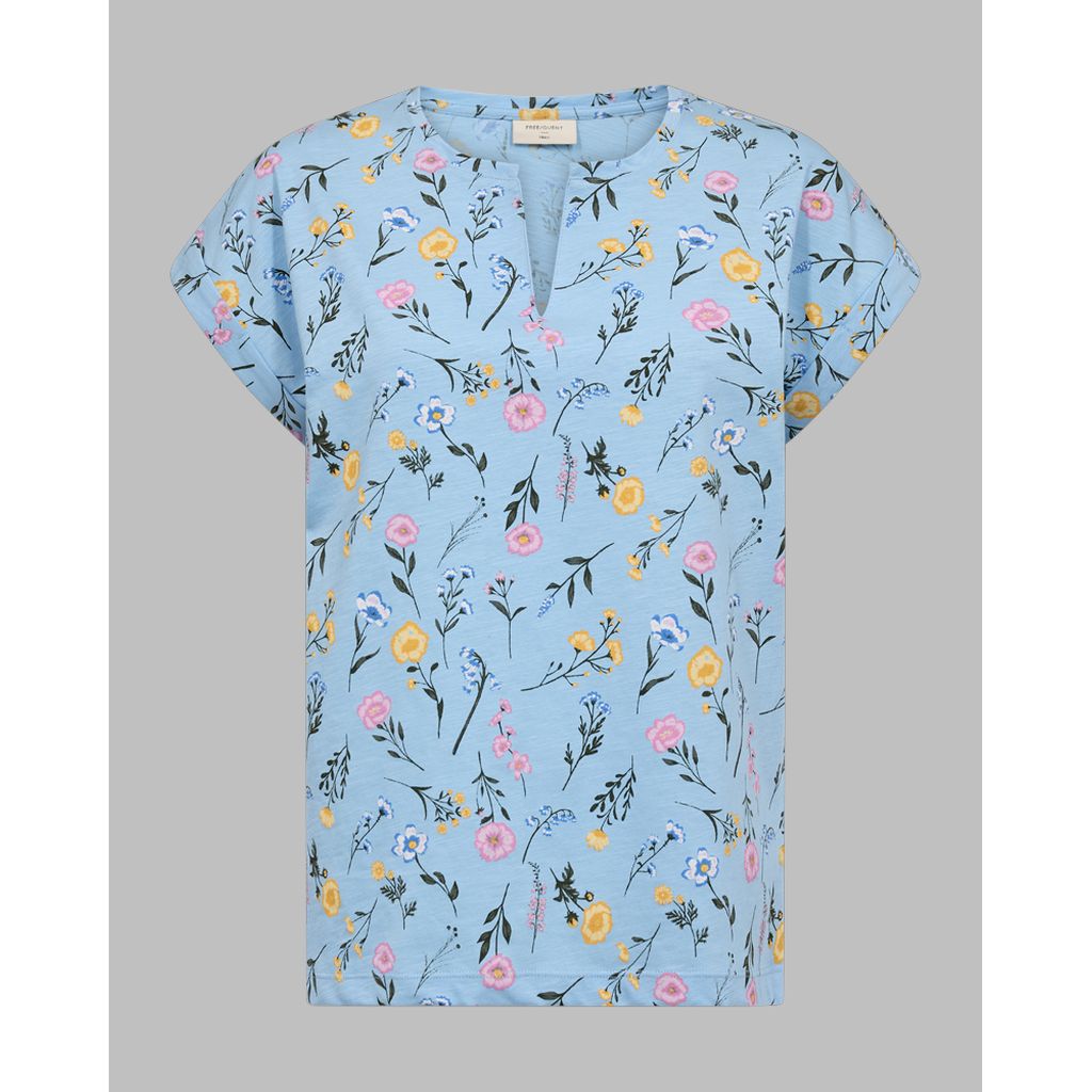 FREEQUENT FQVIVA Naisten kukkakuvioinen T-paita. V-kaula-aukko. Käännetyt hihansuut.