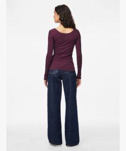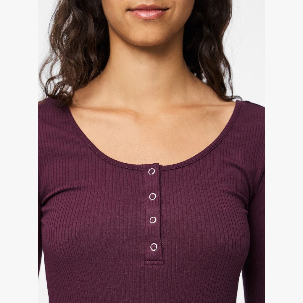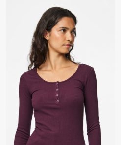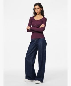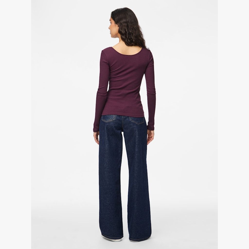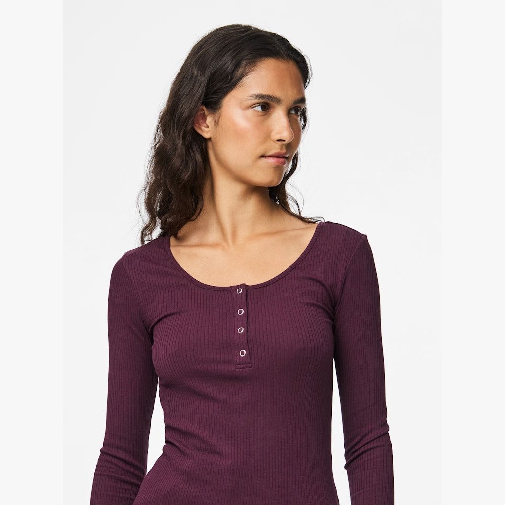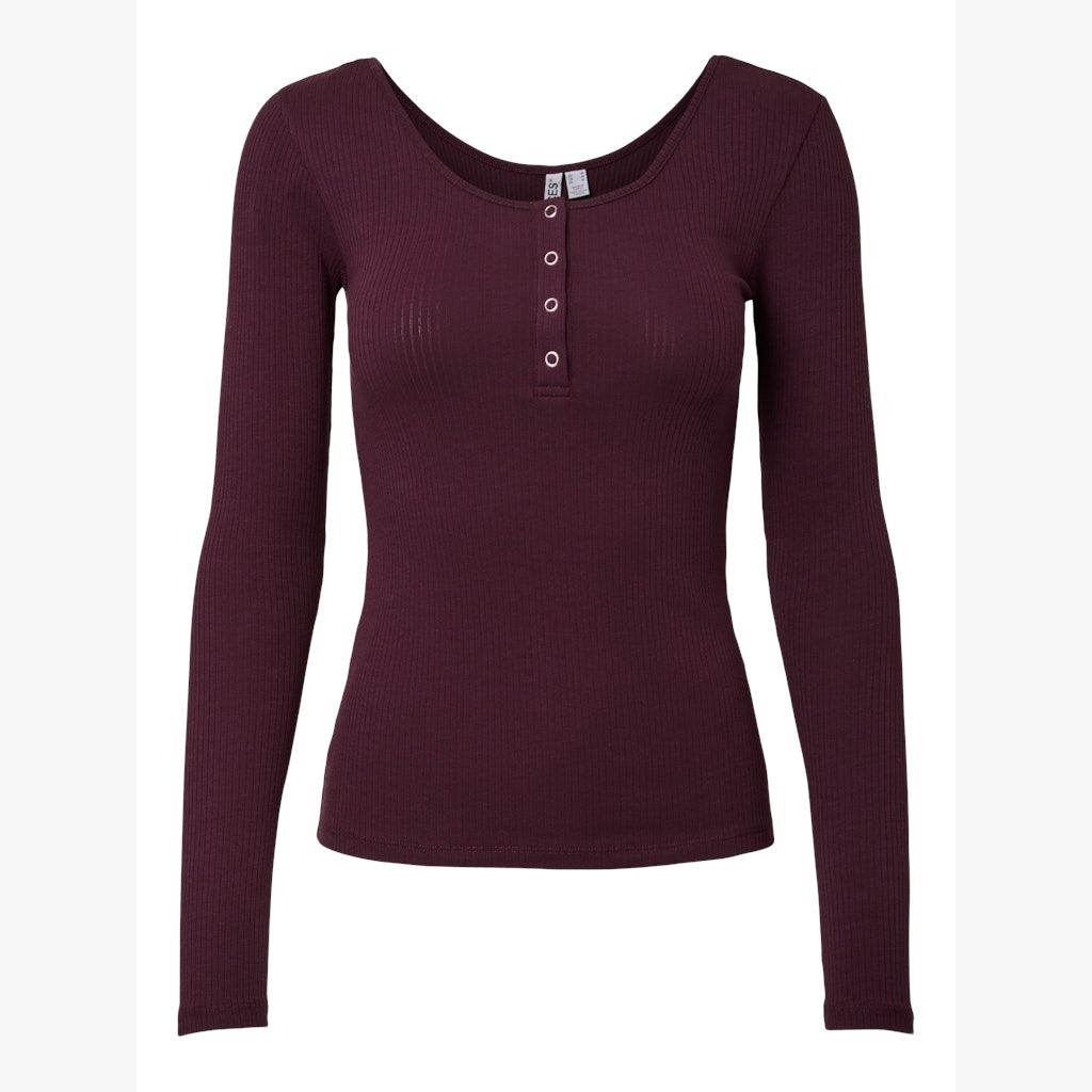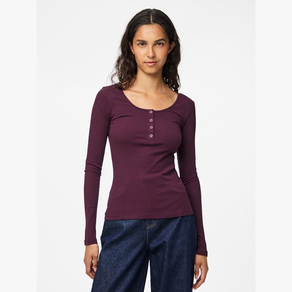 PIECES PCKITTE pitkähihainen ribbitrikoopaita. Edessä nappilista. Slim fit -mitoitus ja O -pääntie.