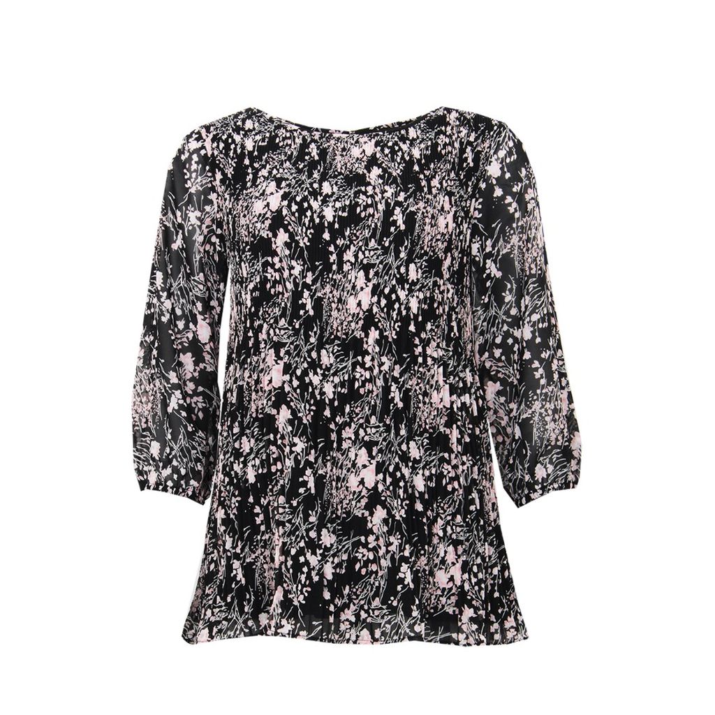 STI KAAREN Pliseerattu vuorellinen kukkakuviollinen paita. 3/4 hihat. Vuori musta. Hihansuissa kuminauhat.