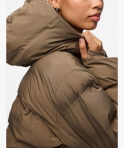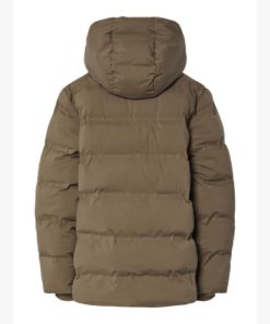 Tikattu ja topattu puffer takki. Kiinteä huppu kiristysnyörillä. Kauluksen sisäpuoli fleeceä. Sisähihansuussa peukaloreikä.