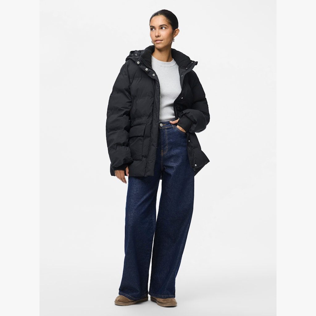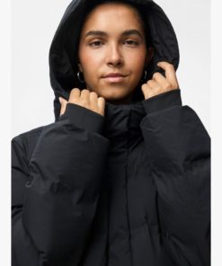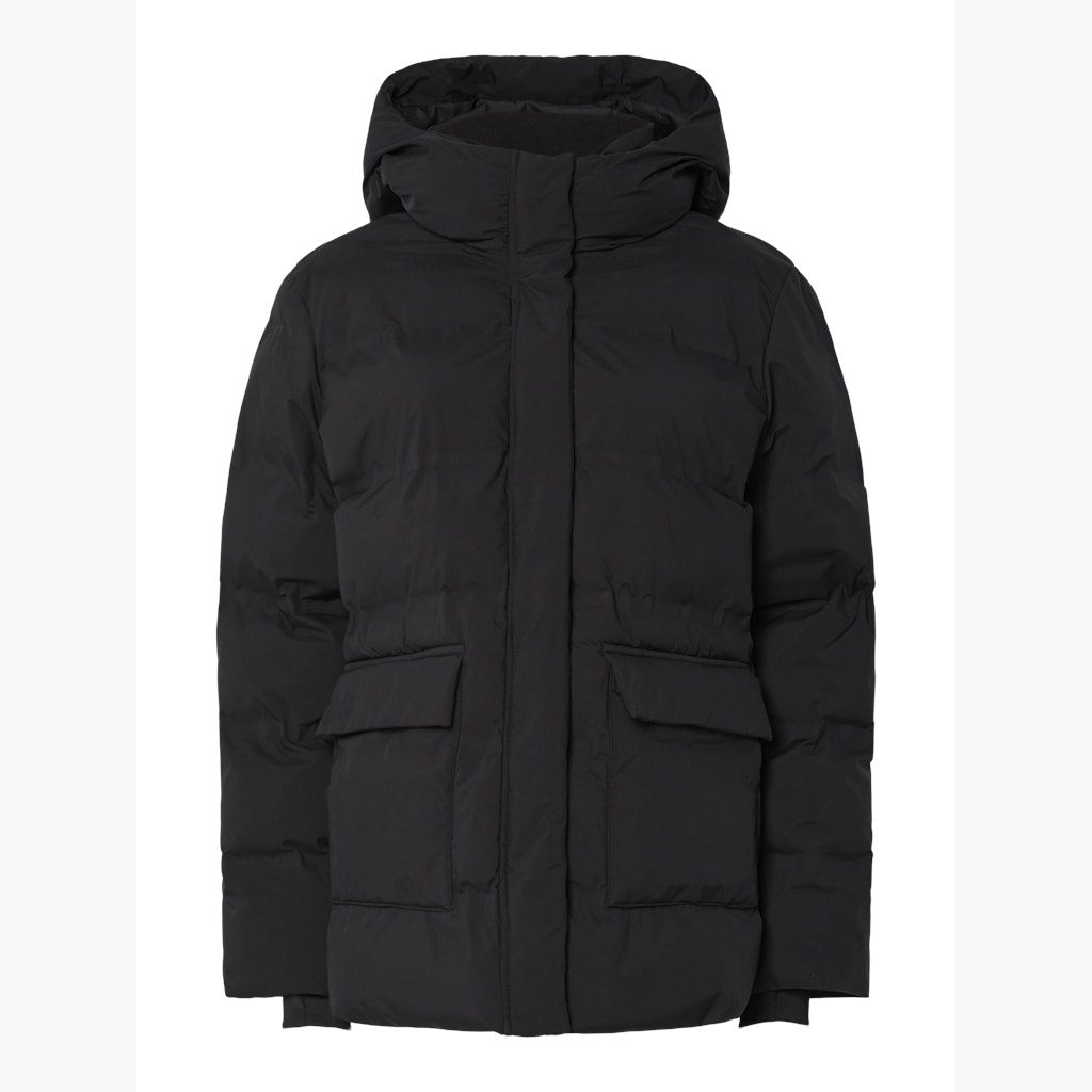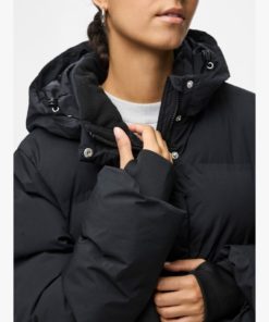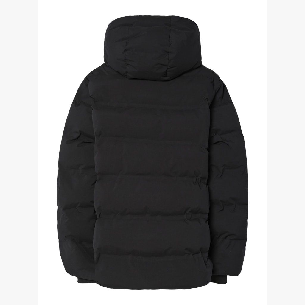 Tikattu ja topattu puffer takki. Kiinteä huppu kiristysnyörillä. Kauluksen sisäpuoli fleeceä. Sisähihansuussa peukaloreikä.