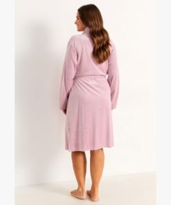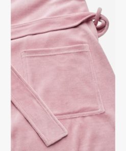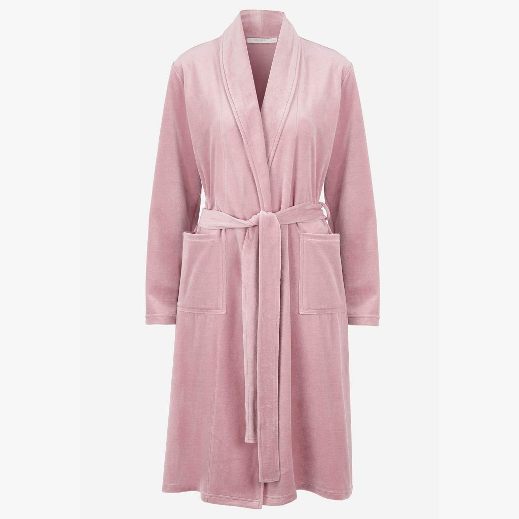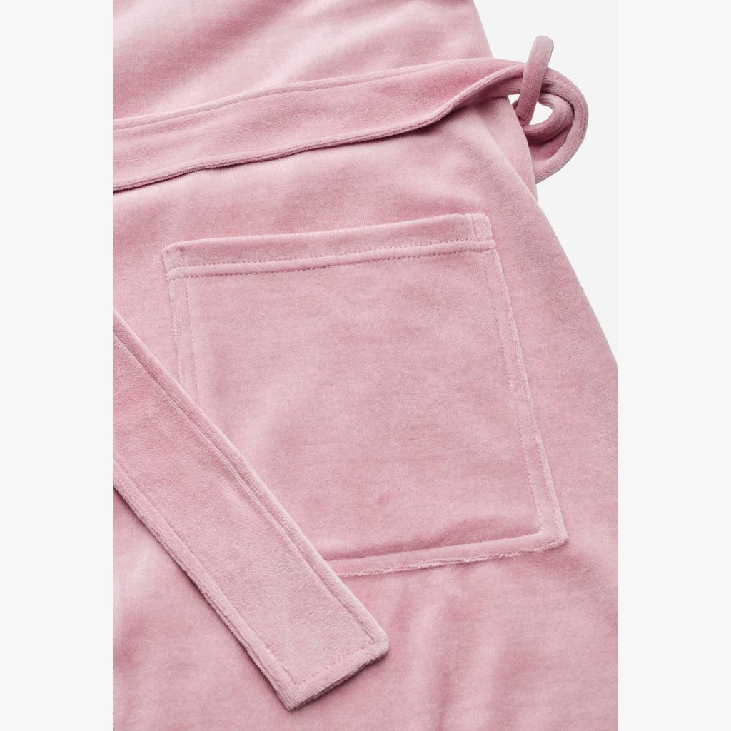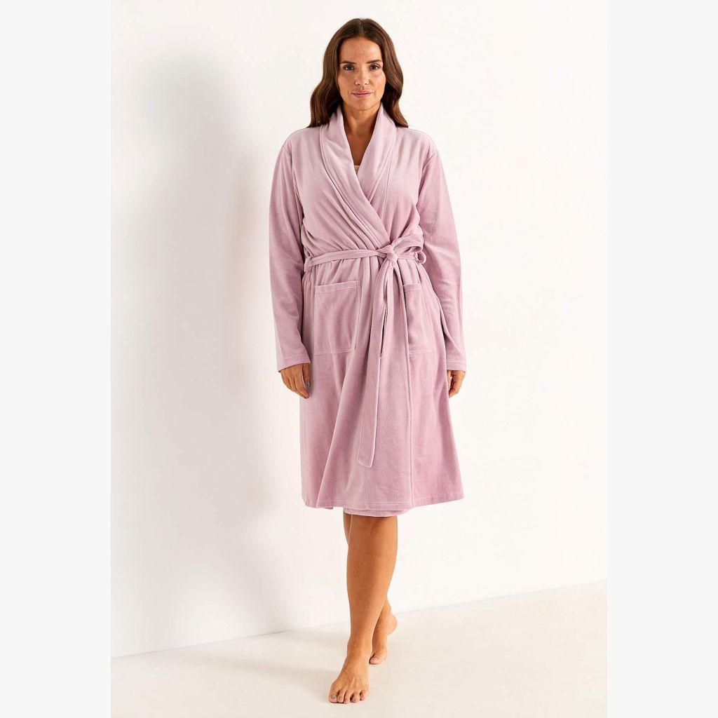 Aamutakki pehmeästä velourista. Irrotettava vyö. Taskut edessä.