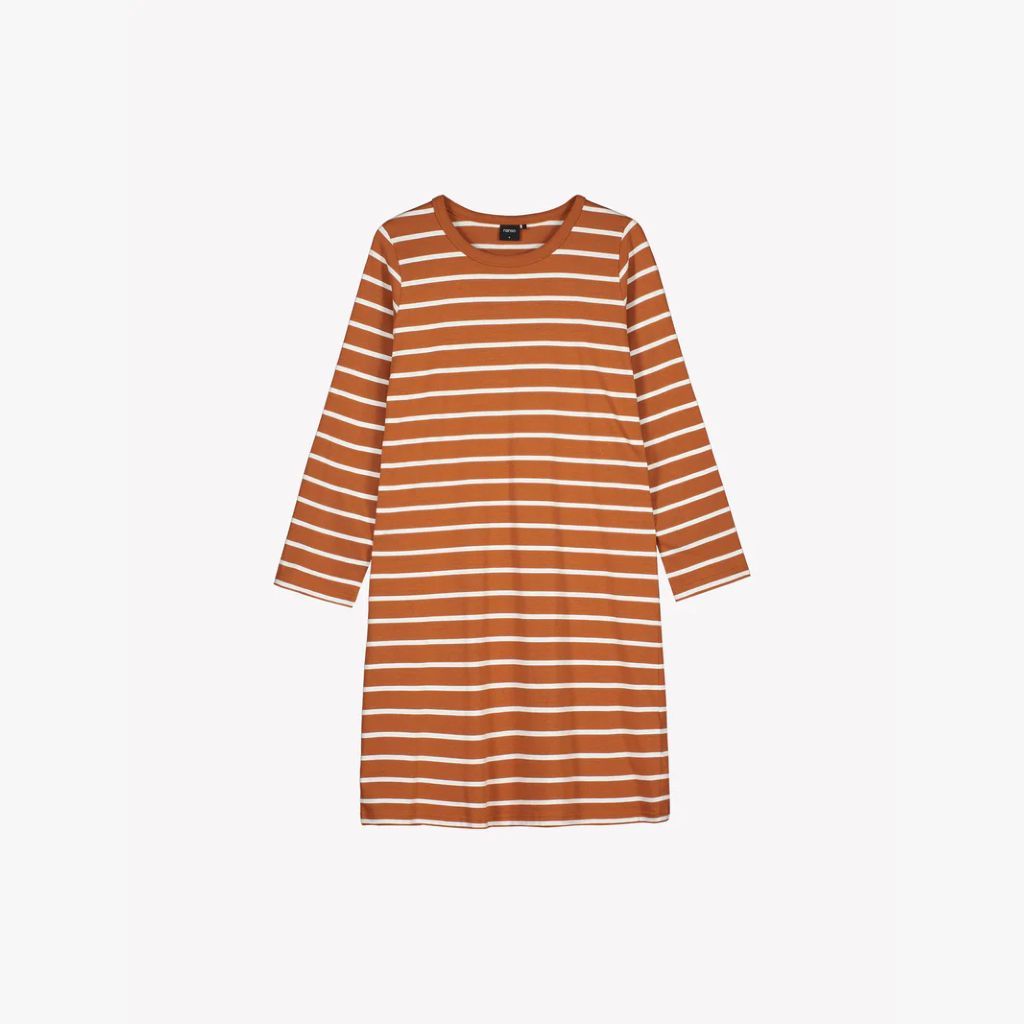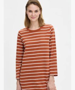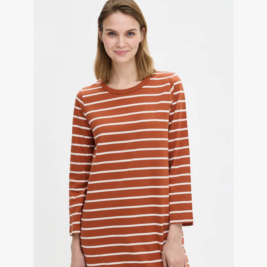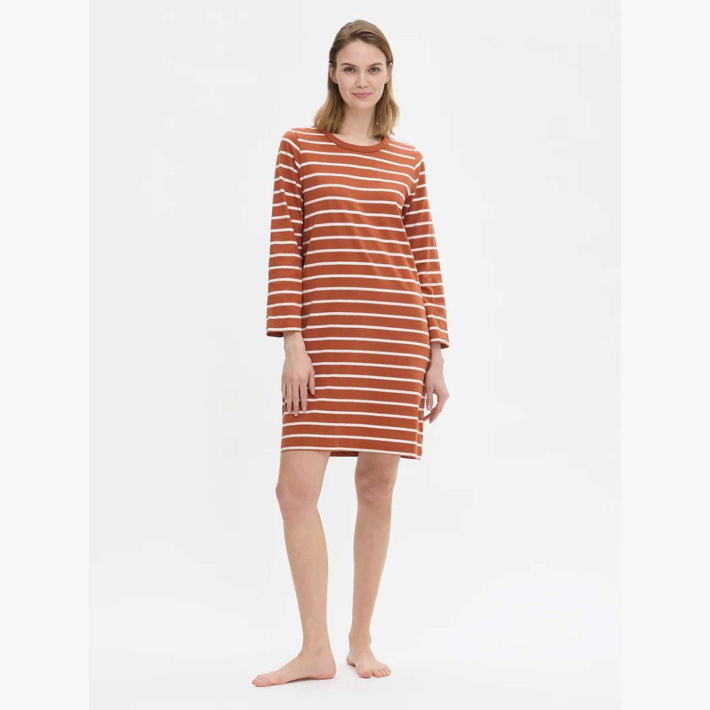 NANSO DUETTO Naisten ruskearaita yöpaita pitkillä hihoilla ja pyöreällä pääntiellä.