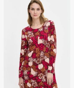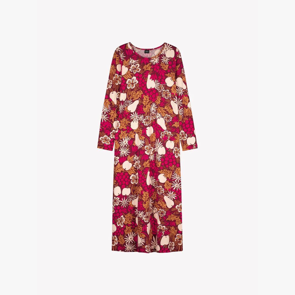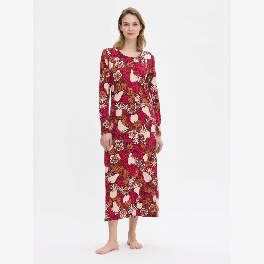 NANSO JUHLA Naisten kuosillinen, pitkä yöpaita pitkillä hihoilla ja pyöreällä pääntiellä. Materiaali on pehmeää puuvilla-modaalia.